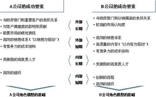 “角色模型”中各指標中的具體內容來源于部門/團隊工作的關鍵成功要素的理解和進一步的分解,為了在組織層面確保項目的成功,角色模型的內容必須與部門/團隊工作的成功因素保持一致。這樣通過對部門/團隊工作關鍵成功因素的戰略性分析,層層分解到與崗位所扮演的角色掛鉤,使得角色模型中的指標能衡量職位對企業關鍵成功要素的貢獻程度和重要性(如:關鍵成功要素:成本領先,角色模型的指標即為:對成本的責任)。