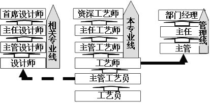 為了擺脫傳統組織職業生涯發展單一通道即單一行政職位通道的弊端,許多組織都為技術人員或其他有重大貢獻的管理人員提供了更多的發展機會。例如海爾集團就分別設置了管理職務和技術職務的發展通道;員工可以自由選擇在專業技術通道上發展,或是在管理通道上發展。無論是管理通道還是技術通道,兩個通道同一等級的管理人員和技術人員在地位上是平等的,在報酬上也是可比的。如下圖就是一個多重職業發展通道,一個工藝員可以選擇三條不同的職業發展道路,一條是本專業線,一條是相關專業線,一條的管理線,由于在這三種通道中員工的薪酬水平相近,發展機會也較為相似,因此員工會選擇一種最符合自己興趣和能力的職業發展道路。